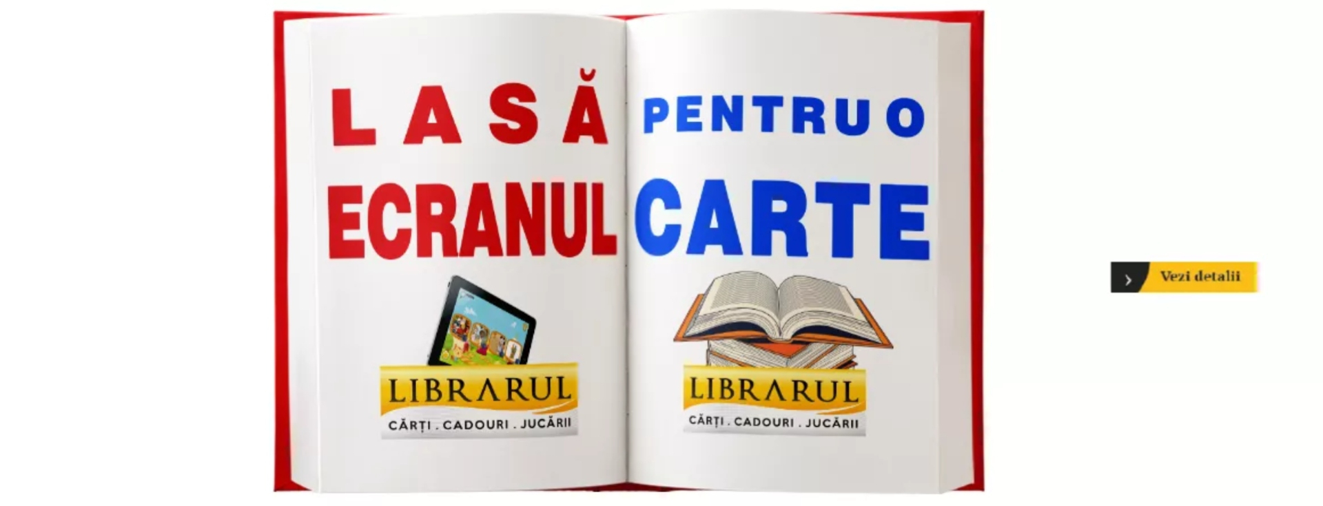 Librarul.ro, vine in intampinarea cititorului pasionat cu oferte si promotii constante, cu transport gratuit la comenzi de peste 95 lei si o varietate de titluri de carti pentru copii, carte crestina, beletristica, dictionare, rechizite, jucarii si cadouri.