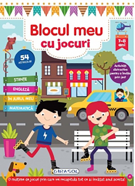 Blocul meu cu jocuri. 7-8 ani de Invata, recapituleaza si integreaza cunostinte noi cu acest bloc de activitati distractiv! Vei putea desena, crea si imagina alaturi de personaje simpatice si in locuri colorate. Include abtibilduri cu care sa il decorezi cum vrei tu si sa te premiezi pentru raspunsurile corecte. Vino si tu sa te distrezi!Cauta blocul cel mai potrivit pentru tine in functie de varsta ta: 5-6 ani, 6-7 ani, 7-8 ani, 8-9 ani, 9-10 ani, 10-11 ani.