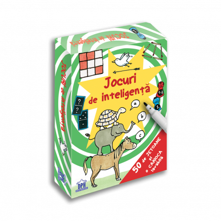 Jocuri de inteligenta - 50 de jetoane de 50 de jetoane interesante, pentru copii istetiPentru verificare, vei gasi si raspunsurile. Antreneaza-ti mintea cu aceste provocari deosebite!50 de jetoane refolosibile. Poti sa scrii si sa rezolvi direct pe jeton.SpecificatiiJetoane: 50Carioca: 1 (lavabila)Marimi: Jetoane: 10 x 15.5