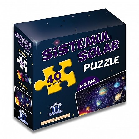 SISTEMUL SOLAR (puzzle 50/70 + afis 50/70) de Sistemul Solar – Puzzle este destinat tuturor copiilor de la 5 la 8 ani.Acest puzzle contine 40 de piese si ii face pe copii sa observe si sa invete ordinea in care sunt asezate planetele, dimensiunile acestora fata de Pamant, satelitii si culoarea fiecarei planete.Puzzle-ul cu Sistemul Solar creeaza abilitati de invatare si intelegere. Este modalitatea ideala de a-ti ajuta copilul sa inteleaga modul de rezolvare a problemelor simple, dezvoltand abilitati importante care il vor ajuta pe masura ce va progresa spre sarcini mai dificile.Constructia pieselor de carton face ca puzzle-ul sa fie usor de inteles si de utilizat si, de asemenea, este o modalitate excelenta de a imbunatati coordonarea maini-ochi si de a incuraja dezvoltarea abilitatilor motorii esentiale si de concentrare.