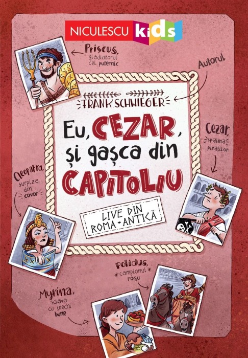 Eu, Cezar si gasca din Capitoliu. LIVE din Roma Antica! de Frank SchwiegerDe ce e Romulus mereu nespus de furios?Cum se face ca niste gaste gagaitoare ajung sa salveze Capitoliul?Cum de se lasa Cleopatra infasurata de buna voie intr-un covor plin de praf?Si de ce trebuie sa intre doi gladiatori, buni prieteni, intr-o lupta unul impotriva celuilalt?Cartea prietenilor din Roma antica:Cezar & Co. isi povestesc aici nenumaratele lor aventuri!Traducere de: Ioan LazarescuVarsta recomandata: 8+