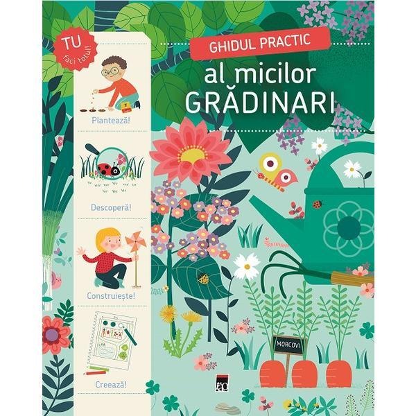 Ghidul practic al micilor gradinari de Michel LuchesiGhidul dezvaluie toti pasii necesari, numeroase informatii despre plantele si animalele din gradina, activitati si retete usor de facut.Lucrarea contine ilustratii deosebite si explicatii concise, pe intelesul copiilor, despre activitatile din gradina, in fiecare luna a anului, grupate in trei categorii:• ce este de facut in luna respectiva• gradina sub lupa• diverse activitati, de la cum sa creezi araci amuzanti, la cum sa construiesti un adapost pentru arici, o casuta pentru pasarele sau cum sa prepari supe delicioase.De asemenea, cei mici vor afla tot ce trebuie sa stie de la insamantare si pana la recoltarea fructelor si legumelor savuroase cultivate chiar de ei. Prin urmare, cartea este un indemn adresat copiilor: Ia-ti uneltele, fugi in gradina si devino un adevarat gradinar!
