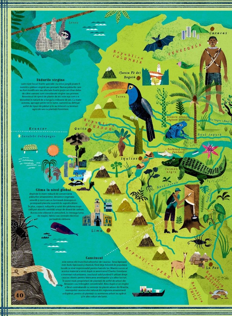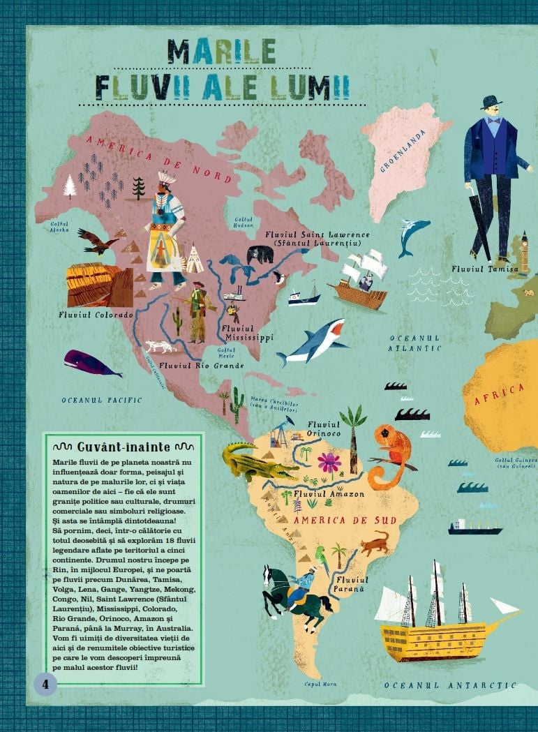 Marile fluvii ale lumii de Volker Mehnert, Martin HaakeDe la Amazon la Volga O calatorie pe cele mai mari fluvii de pe PamantCare dintre fluvii este cel mai lung din lume: Nilul sau Amazonul? Ce tari traverseaza Dunarea? Cum si-a sapat fluviul Colorado drumul printre stancile din Marele Canion? Ce face din fluviul Nil artera vitala a Egiptului? Fie ca sunt granite culturale sau politice, artere comerciale sau simboluri religioase, fluviile au avut dintotdeauna o insemnatate deosebita pentru noi, oamenii. In aceasta carte, plina de ilustratii extraordinare si de informatii complexe, sunt prezentate 18 fluvii faimoase, de pe toate continentele lumii, precum si cele mai cunoscute obiective turistice din zona si obiceiurile locuitorilor de pe malurile lor. Cititi-o si veti fi bucurosi sa le descoperiti! "O carte ilustrata, excelenta deopotriva pentru cei mici si cei mari. Este cu adevarat educativa!"Borsenblatt Magazin"Aceasta lucrare este plina de surprize, prezentand fiecare fluviu intr-o serie de imagini minunate, insotite de povestioare captivante."GEOlino Magazin"Prin intermediul acestei carti am putea calatori la nesfarsit. Sa o rasfoiesti este extrem de interesant si de distractiv."Heide Germann, in Darmstädter Echo Traducere: Miruna Popescu