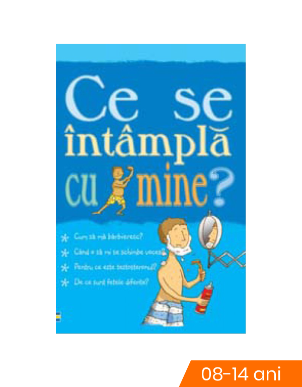 Ce se intampla cu mine? (pentru baieti) de Alex FrithIlustratii: Adam LarkumMaturizarea e mult mai usoara daca stii la ce sa te astepti. Aceasta carte descrie exact ce se va intampla cu corpul tau, intr-un mod direct, usor de inteles, si iti explica si unele dintre sentimentele tale tot ce trebuie sa stii in aceasta perioada atat de importanta din viata ta.Cand o sa mi se schimbe vocea?De ce sunt fetele diferite?