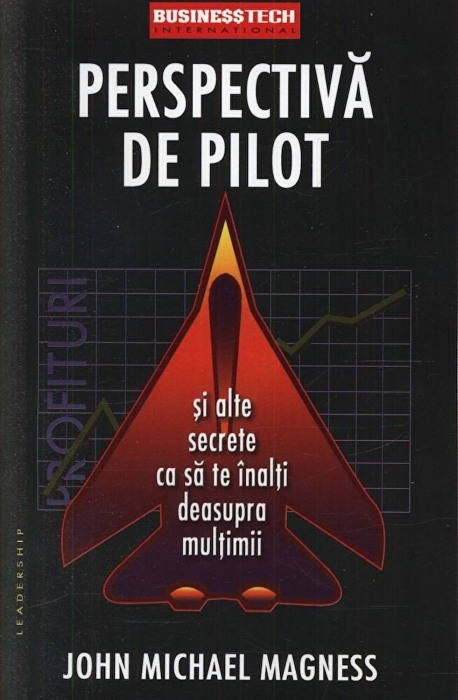 Perspectiva de pilot si alte secrete ca sa te inalti deasupra multimii de John Michael MagnessAlegand aceasta carte, alegi sa te avanti spre ceruri, sa te ridici deasupra celorlati cu pricepere, curaj si incredere, asa cum o face un pilot. Vei invata sa "zbori" deasupra competitorilor. Tinteste cat mai sus, acolo este mai putina inghesuiala, aerul este mai curat iar privelistea iti taie respiratia!Autorul te invita pe tine cititorule, sa inveti sa privesti lumea prin ochii unui pilot - sa gandesti, sa planifici si sa actionezi intocmai ca un pilot, cu disciplina si curaj, cu increderea si precizia unui pilot bine pregatit.Aceasta carte iti impartaseste sapte secrete ale pilotilor de success, sapte principii pe care le poti aplica pentru a deveni un "Lider-Pilot" in afaceri.1. Perspectiva de pilot2. Luciditatea situationala3. Puterea planificarii4. Progresul prin tehnologie5. Comunicarea perspectivei personale6. Puterea cunoasterii7. IncredereaJohn Michael Magness este orator profesionist, consultant de renume international si pilot de elicopter. Ca veteran al Razboiului din Golf si fost pilot in fortele speciale, a zburat cu cei mai buni piloti de elicopter pe care ii are armata americana, faimosii Vanatori ai Noptii, in misiuni secrete peste tot in lume. Este licentiat in inginerie aerospatiala, fiind absolvent al Academiei Militare West Point. A obtinut titlul de master in afaceri la Universitatea Boston. Locuieste impreuna cu sotia si cei doi copii in Fort Worth, Texas.John Michael Magness sustine la nivel international seminarii de instruire si programe motivationale. Perspectiva sa unica, de pilot de elicopter, asupra afacerilor si conducerii se bucura de aprecierea favorabila a profesionistilor din domeniu.