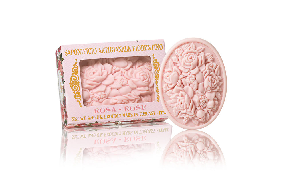 125g sapun oval cu fereastra sculptat cu buchet de flori