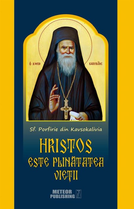 Hristos este plinatatea vietii de Sfantul Porfirie din KavsokaliviaPe data de 27 noiembrie 2013, Sfantul Sinod al Patriarhiei Ecumenice l-a trecut in mod oficial pe Batranul Porfirie din Kavsokalivia in randul sfintilor Bisericii Ortodoxe.Sfantul Porfirie, "clarvazator, modest, smerit si inflacarat", era plin de dragoste arzatoare pentru Hristos si semenii sai, iar fiecare ipostaza a vietii sale adeverea ceea ce marturisea el insusi cu atata ardoare, si anume ca Hristos este plinatatea vietii. Cu prezenta sa luminoasa, cuvintele sale inspirate si rugaciunea sa arzatoare, el a facut ca harul vietii traite in Hristos sa devina realitate pentru cei care veneau la el, transmitandu-le credinta, bucurie, putere, nadejde si constiinta adevaratului sens al vietii. Cuvintele sfantului consemnate in carte se refera la rugaciune, viata duhovniceasca, cresterea copiilor, boala si alte teme, oferind raspunsuri si deschizand un fagas in viata.in vremurile grele, de durere si apostazie, pe care le traim azi, Sfantul Porfirie din Kavsokalivia, cu atractia universala, permanenta pe care o exercita, se ofera pe sine si le apartine tuturor acelora care cauta adevaratul sens al vietii si-i cer ajutorul. Prin intermediul sfintelor sale rugaciuni, el se afla aproape de noi acum mai mult ca oricand, asa cum el insusi spunea: Cand Hristos ne uneste, nimic nu ne mai desparte. Cand am sa parasesc viata aceasta, va fi mai bine. Voi fi mai aproape de voi.