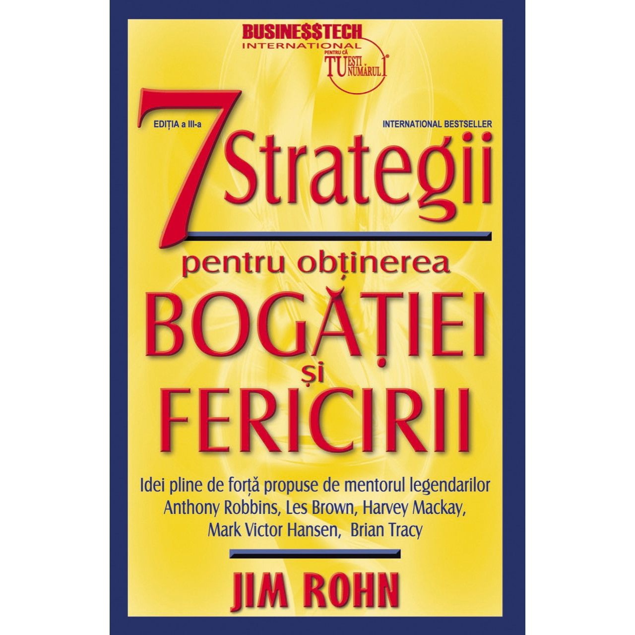 7 strategii pentru obtinerea bogatiei si fericirii - editia a III a de Jim RohnNu trebuie sa alegi intre bogatie si fericire - ele izvorasc din aceeasi fantana a abundentei! Cu ajutorul acestei carti vei descoperi cele 7 strategii esentiale de care ai nevoie pentru a-ti trai viata in bogatie si fericire. Filozofia autorului Jim Rohn a ajutat milioane de oameni sa isi schimbe viata. Descopera ce poate face in cazul tau! Pentru mai bine de 40 de ani Jim Rohn s-a consacrat in meseria lui ca un artist renumit ce ajuta oamenii din intreaga lume sa-si sculpteze in imaginatia lor propriile strategii de viata. Cei care au avut privilegiul de a-l asculta pot atesta eleganta si bunul sau simt material. Nu este o coincidenta atunci cand este considerat ca fiind unul dintre ganditorii cei mai influenti din timpurile noastre. Dovada sunt nenumaratele filozofii de viata si de afaceri. "Nu-ti dori sa-ti fie mai usor; doreste-ti sa-ti fie mai bine. Nu-ti dori mai putine probleme; doreste-ti mai multe aptitudini. Nu-ti dori mai putine provocari; doreste-ti mai multa intelepciune!""Nu te bucura de asteptari si cerinte mici. Nu vei creste. Bucura-te atunci cand asteptarile si cerintele de a face si a atinge performanta sunt mari.""In general ne schimbam pentru unul din doua motive: inspiratie sau disperare. Nu astepta sa te-ajunga disperarea.""Putini sunt cei care nu sunt invidiati de catre cei care privesc.""Succesul este un rezultat de asteptat pentru persoana care te-astepti sa devii.""Este periculos sa zabovesti prea mult la masa succesului. Singurul mod in care te poti bucura de o alta masa este sa iti fie foame.""Oamenii saraci isi cheltuiesc banii si economisesc ceea ce ramane. Oamenii bogati isi economisesc banii si cheltuiesc ceea ce ramane. Este vorba de aceeasi suma de bani; doar filozofia e diferita." Jim Rohn a scris nenumarate carti si programe audio si video si a ajutat, motivat si format generatii intregi de antrenori de dezvoltare personala si sute de directori executivi de top de la cele mai mari si importante companii din intreaga lume. Nascut intr-o familie de fermieri din Idaho, la mijlocul anilor 1900, Jim a fost binecuvantat cu o etica a muncii care i-a servit din plin de-a lungul intregii sale vietii. La 25 de ani si-a intalnit mentorul, Earl Shoaff, si in urmatorii 6 ani el a facut prima sa avere, dar nu a inceput sa sustina conferinte pana cand nu s-a mutat in Beverly Hills, California, cand un prieten de la Clubul Rotary i-a cerut sa isi spuna povestea de succes pe care Rohn a intitulat-o "De la coada vacii la Beverly Hills". Discursul sau a fost primit atat de bine incat a fost invitat sa-si impartaseasca povestea de succes si in alte medii contra unui onorariu. Astfel a inceput sa vorbeasca in fata elevilor, a studentilor, au urmat prelegeri sustinute in fata mai multor asociatii de meseriasi si cluburi de servicii, ajungand sa aibe audiente din ce in ce mai mari si mai exigente. Jim Rohn a fost deschizator de drumuri in teoria dezoltarii personale si profesionale cu impact in vietile a milioane de oameni. El s-a axat pe elemente fundamentale ale comportamentului uman care afecteaza cel mai mult performatele personale si profesionale. Jim Rohn poseda capacitatea unica de a aduce perspective extraordinare principiilor si evenimentelor obisnuite intr-o combinatie de substanta si stil captand imaginatia celor care aud sau citesc cuvintele lui. "Cred sincer ca Jim Rohn este un om extraordinar a carui filozofie poate face ca oricine sa aiba o viata mai buna."-Anthony Robbins "Putini oameni sunt dotati cu abilitatea lui Jim Rohn de a motiva si a realiza schimbari in ceilalti oameni."-Tom Hopkins "Jim Rohn este unul dintre cei mai profunzi ganditori pe care am avut vreodata sansa de a-i asculta."-Les Brown "Jim Rohn este un maestru in arta motivarii - are stil, substanta, carisma, relevanta, sarm si ceea ce spune are importanta. Lumea ar fi mai buna daca toti oamenii l-ar asculta pe prietenul meu Jim Rohn."-Mark Victor Hansen