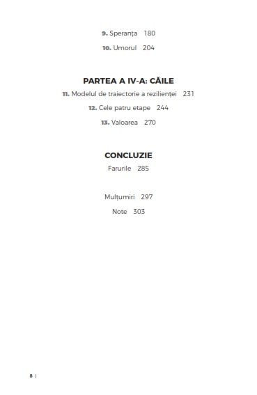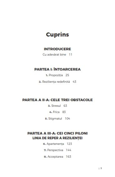 Calm in furtuna Calea spre rezilienta zi de zi de Dr. Robyne Hanley-DafoeO cale blanda, puternica si accesibila de a dobandi rezilienta de zi cu zi, de care cu totii avem nevoie pentru a putea face fata lipsei de siguranta in viata."Un manual profund, inteligent si totodata practic, care ne ajuta sa redefinim rezilienta din viata de zi cu zi. La aceasta carte poti reveni ori de cate ori te simti coplesit, cand treci printr-o perioada de mari transformari sau atunci cand ii ajuti pe cei tineri sa-si gaseasca propriul drum in viata."SILKEN LAUMANN,medaliata olimpica la canotaj si mentor pentru persoane cu afectiuni mintale"Calm in furtuna nu este doar o carte ce te face mai puternic, ci si o invitatie sa te conectezi mai profund cu tine insuti."CAVELL JOHNSON,jucator profesionist de baschet, antrenor si manager al echipei KW Titans din CanadaO voce care, fara nicio indoiala, inspira in domeniul rezilientei, dr. Robyne Hanley-Dafoe prezinta in cartea de fata un model nou si accesibil al rezilientei de zi cu zi, pe care oricine il poate pune in aplicare pentru a se simti mai echilibrat. Ea identifica obstacolele care ne perturba si ne blocheaza, aratandu-ne cum sa cultivam si sa exersam rezilienta pentru a trece cu bine prin evenimente importante, apeland pentru aceasta la povesti de viata, cercetari stiintifice si strategii practice.