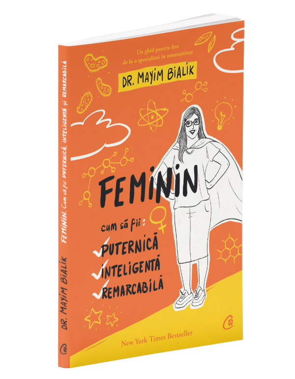 Feminin Cum sa fii puternica, inteligenta, remarcabila de Dr. Mayim BialikBialik combina cunostintele academice cu experientele personale, oferind un ghid foarte util fetelor aflate in proces de maturizare.— Publishers WeeklyFeminin este un ghid practic care te va invata tot ce trebuie sa stii despre perioada de tranzitie de la adolescenta la maturitate. Descopera in paginile lui informatii pretioase despre cum se dezvolta si cum functioneaza corpul tau, despre procesul de invatare, despre iubire, sex si relatii. Afla cum sa faci fata momentelor dificile cu care te vei confrunta de-a lungul drumului sinuos de la fetita la femeie si invata sa te simti grozav in pielea ta.Ca sa iti explice tot ce trebuie sa stii despre procesul de maturizare, MAYIM BIALIK foloseste notiuni din neurostiinte, pe care le condimenteaza cu marturisiri si experiente personale. Etapele prin care treci in perioada de crestere, felul in care ti se schimba corpul, emotiile, perceptia de sine si raportarea la lume si la cei din jur – nimic nu va mai avea secrete pentru tine! Deschide cartea si porneste impreuna cu Mayim Bialik in frumoasa calatorie pe care a pregatit-o pentru tine. Dr. MAYIM BIALIK este foarte cunoscuta din renumita comedie americana Teoria Big Bang, unde a interpretat un rol pentru care a fost nominalizata la patru editii Emmy si a castigat Premiul Criticilor. De asemenea, a jucat in serialul Blossom, difuzat la inceputul anilor ᾽90. Mayim a obtinut o diploma in neurostiinte la UCLA si o diploma in studii ebraice, dupa care si-a luat doctoratul in neurostiinte, tot la UCLA.Mayim a fondat in 2015 GrokNation.com – o platforma online unde isi publica scrieri care abordeaza subiecte dintre cele mai diverse, de la observatii de natura religioasa asupra problemelor femeilor pana la politica si pastrarea modestiei in lumea hollywoodiana. S-a prezentat intotdeauna ca o mama obisnuita, cu defecte si calitati, care incearca sa netezeasca pentru copiii ei asperitatile unei lumi ce deseori ii scapa de sub control. Mayim locuieste in Los Angeles impreuna cu cei doi fii ai sai.