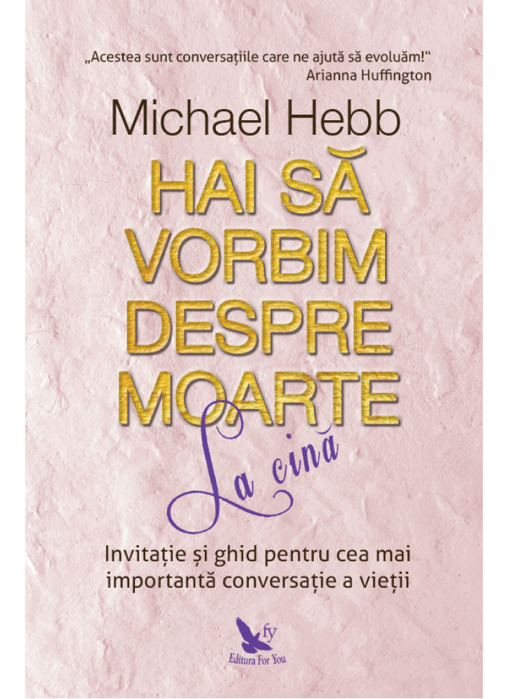 Hai sa vorbim despre moarte La cina de HEBB MICHAELSuflet si idei pentru cea mai dificila si mai importanta conversatie din viata!Dintre numeroasele conversatii critice pe care le avem cu totii de-a lungul vietii, putine sunt la fel de importante ca cele despre moarte – nu doar considerentele practice, precum resuscitarea si testamentul, ci si fricile, sperantele si cum vrem sa fim tinuti minte. Insa putine asemenea conversatii au loc de fapt!Inspirat de experienta cu tatal sau si cu oameni care regreta ca nu au purtat aceste conversatii, Michael Hebb a fondat Death Over Dinner, o organizatie ce ne incurajeaza sa discutam cu adevarat despre unicul lucru pe care il avem in comun toti si sa ne constientizam fara teama sfarsitul vietii. In doar trei ani, peste 100 000 de astfel de conversatii purtate la cina au adus pace, liniste si bucuria de a trai in sufletul a mii de oameni.Cartea de fata te invata cum sa porti aceasta conversatie – nu doar la masa de seara, in tihna, ci oriunde. Nu exista vreo modalitate adecvata de a vorbi despre moarte, insa Hebb iti impartaseste idei testate in timp (si la cina) pentru a initia conversatia, in diferite stiluri: de la spiritual la practic, de la analitic la amuzant si surprinzator.Hai sa transformam cea mai dificila dintre conversatii intr-o oportunitate! Ne vom schimba nu numai modul in care murim, ci si modul in care traim!