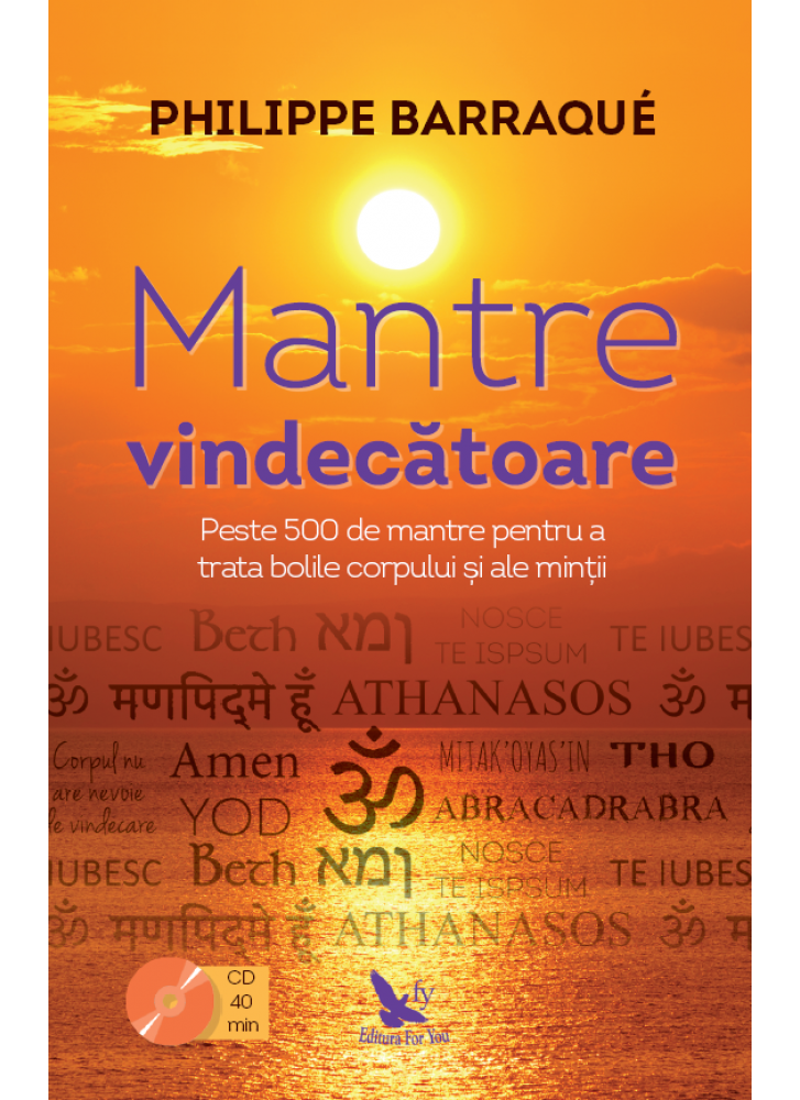 Mantre vindecatoare de Barraqué Philippe Mantrele sunt silabe sau enunturi sacre dotate cu o puternica forta spirituala si cu numeroase virtuti terapeutice. Aceste sunete incantatoare ne-au fost lasate mostenire prin traditii precum budismul, samanismul, crestinismul, ezoterismul, Cabala ebraica, Kototama, Reiki, Yoga si Zen. Mantrele fac posibila relationarea cu fortele divine prin incredibila lor forta vibratorie. Descopera in cartea Mantre vindecatoare peste 500 de mantre, cu diverse origini, inclusiv unele create chiar de autor, reputatul Philippe Barraqué. El te invata cum si cand sa le folosesti pentru a beneficia cel mai bine de numeroasele lor beneficii si puteri de vindecare. Vei gasi printre ele mantre adaptate pentru numeroase situatii din viata cotidiana: blocaje, boli, concentrare, depresie, examene, extinderea constientei, fericire, frici, ganduri negative, karma, obstacole, protectie, purificare, realizare, renastere, sarcina, sexualitate, somatizare, stima de sine, respiratie, vitalitate etc. Este pentru prima oara cand aceste comori din atatea traditii de intelepciune sunt reunite intr-o singura carte! Foloseste-le si tu pentru a-ti spori starea de bine si evolutia interioara!