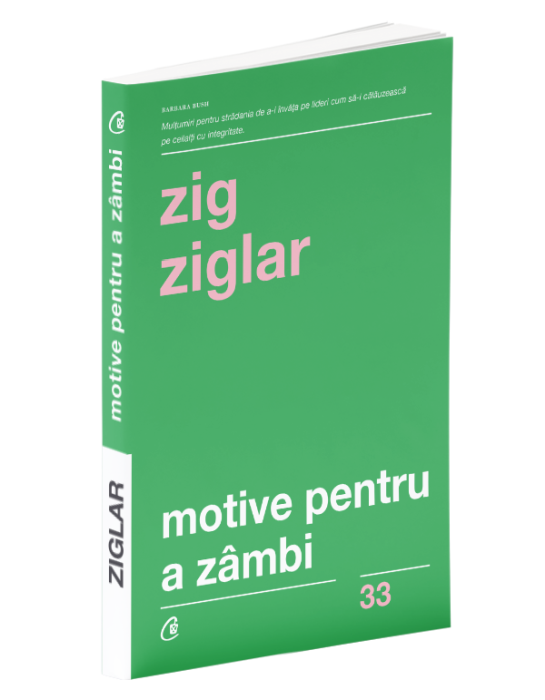 Motive pentru a zambi de Zig ZiglarFiecare dintre noi are nevoie de un cuvant bun, de sustinere, pentru a putea trece peste dificultatile cotidiene. Cartea lui Zig Ziglar iti ofera sfaturile de care ai nevoie, istorisiri care iti fac ziua mai buna, precum Si citate pline de talc ale unor personalitati din diverse domenii. Toate acestea te vor ajuta sa ai o viziune optimista asupra vietii Si a relatiilor dintre oameni, necesara pentru implinirea personala Si atingerea scopurilor propuse.Zig Ziglar iti impartaSeSte atat propriile experiente, cat Si pe cele ale altora, oferindu-ti exemple menite sa te motiveze Si sa te inspire in toate aspectele vietii. PoveStile emotionante despre oameni care au depaSit handicapuri Si dezavantaje sau care au intrecut orice aSteptari in domenii din care fusesera initial excluSi ne invata adevarate lectii de viata, determinandu-ne sa revenim la ele iar Si iar, pentru ca mai apoi sa le transmitem Si altora, care sa le descopere, la randul lor. Nu conteaza nici de unde incepi Si nici macar evenimentele prin care treci in drumul tau. Important este sa perseverezi Si sa nu incetezi niciodata sa ai incredere in tine.Zig Ziglar 1926-2012 a fost un celebru orator Si autor de carti motivationale. S-a nascut in Alabama, a avut 11 frati Si surori Si a ramas orfan de tata la varsta de 6 ani. In tinerete s-a inscris la colegiu, insa a renuntat ulterior la cursuri Si a inceput sa lucreze ca agent de vanzari. Din 1970, Ziglar s-a dedicat carierei de orator motivational, incepand sa tina discursuri pe tot cuprinsul Statelor Unite. In 1975, i-a fost publicata prima carte primul bestseller.A fondat compania Ziglar Inc., pe care a condus-o in calitate de preSedinte. Inca de la inceput, menirea companiei a fost aceea de a-i ajuta pe cei care au dorit sa-Si puna in valoare toate resursele fizice, intelectuale Si spirituale. Sute de organizatii din lumea intreaga ii studiaza cartile, programele video Si casetele audio sau participa la cursurile companiei sale de formare a angajatilor. Ziglar a scris aproape 30 de carti despre dezvoltare personala, vanzari, leadership, etica, performanta, persuasiune, succes profesional Si personal, dar Si despre relatii de cuplu.Dupa 30 de ani de activitate ca lector, a fost distins cu Cavett Award de catre National Speakers Association din SUA. De-a lungul deceniilor, a calatorit in lumea intreaga Si in fata unui public foarte eterogen Si-a transmis mesajele mereu cu umor, speranta Si entuziasm. De asemenea, a avut aparitii publice alaturi de figuri celebre ale Americii, precum Ronald Reagan, Norman Vincent Peale, Paul Harvey, Art Linkletter Si Robert Schuller, dar Si numeroSi congresmeni Si guvernatori americani.