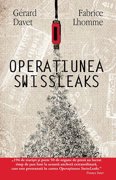 Operatiunea Swissleaks de Gerard Davet, Fabrice LhommeAproape 200 de miliarde de euro stocate pe un stick USB. Opt persoane, printre care un judecator, un spion, un agent al Fiscului, hotarati sa sparga omertá financiara. Doi anchetatori pe urmele unei escrocherii mondiale: 106 000 de conturi ascunse la banca elvetiana HSBC, cea mai mare frauda fiscala descoperita vreodata. Si, desigur, Ruben Al-Chidiack, un informator providential. Iata, in sfarsit, dedesubturile afacerii SwissLeaks. Autorii prezinta niste documente inedite, extrase de pe acest micut stick USB rosu, de care nu se despart niciodata. Si el este departe de a-si fi dezvaluit toate secretele. Da, afacerea nu este decat la inceput.