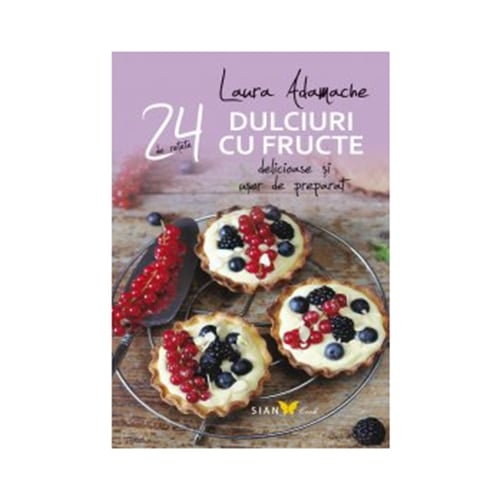 24 de retete. Dulciuri cu fructe de Laura AdamacheLaura Adamache recomanda preparate clasice condimentate cu idei moderne si pregatite cu ingrediente gustoase si sanatoase. Dulciurile cu fructe sunt ideale ca gustari sau deserturi, pentru cei mai pofticiosi membri ai familiei sau pentru intampinarea oaspetilor. Pentru fiecare reteta se indica gradul de dificultate, iar modul de preparare este prezentat pe puncte, pas cu pas. Retetele sunt completate de casete cu trucurile delicioase ale autoarei. Cartea se mandreste cu o grafica deosebita si cu fotografii imbietoare. La final, cuprinde doua pagini de agenda pentru notitele personale.Din meniu:Piersici coapte umplute cu ciocolata si amaretti"Focaccia" rapida cu kiwiTarta rustica cu smochine si nuciAnanas copt cu caramel de portocale"O cunoastem si o urmarim pe Laura Adamache de cativa ani si o admiram pentru toate retetele plus fotografiile minunate. Recunoastem ca am pierdut multe ore rasfoindu-i retetele de pe blog si ca nu ne-a dezamagit niciodata." - Gustos.ro"Sunt retete simple, explicate cu grija si insotite de fotografii pas cu pas – ideale atat pentru incepatori, cat si pentru acele momente cand avem pofta de ceva bun si rapid." – Mentasirozmarin.roDescopera toate cartile din seria "24 de retete delicioase si usor de preparat"!