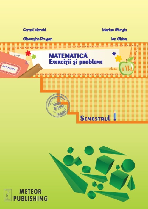 Matematica. Exercitii si probleme. Clasa a VI-a, semestrul I 2013-2014 de Cornel Moroti, Marius Giurgiu, Gheorghe Drugan, Ion GhicaCele patru culegeri de matematica pentru gimnaziu pentru anul scolar 2013-2014, semestrul I, au fost intocmite de profesori de matematica cu o bogata experienta didactica, cadre didactice si inspectori de specialitate in cadrul Serviciului National de Evaluare si Examinare, care au elaborat cate un test cu exercitii si probleme pentru fiecare saptamana a semestrului I. S-a tinut seama de structura anului scolar si de programa de matematica, pentru temele studiate in acest interval. Este un instrument de lucru care ii ajuta sa-si aprofundeze cunostintele de aritmetica, algebra si geometrie printr-o activitate individuala. Fata de alte culegeri existente, acestea au avantajul de a fi concepute pe lectii, in cadrul fiecarui capitol asigurandu-se parcurgerea ritmica a materiei. Fiecare lectie contine la inceput notiunile teoretice necesare, urmate de exercitii si probleme concepute in mod gradat. Fiecare capitol se incheie cu exercitii si probleme recapitulative prin teste.