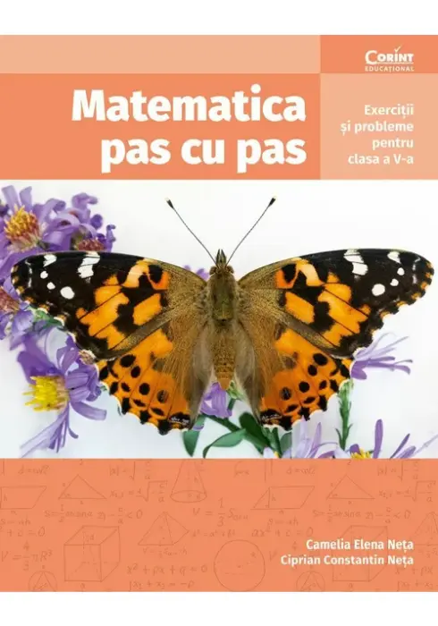 Matematica pas cu pas. Exercitii si probleme pentru clasa a V-a de Camelia Elena Neța, Ciprian Constantin NețaMatematica pas cu pas. Exerciții și probleme pentru clasa a V-a este un instrument de antrenament și de sistematizare a celor mai importante conținuturi din programa școlară în vigoare. Prima parte a lucrării prezintă, pentru fiecare dintre cele trei unități de învățare, câte un scurt breviar teoretic, exerciții și probleme pentru antrenament ‒ accesibile tuturor elevilor, probleme cu grad sporit de dificultate ‒ adresate elevilor care doresc să facă performanță în acest domeniu și teste de evaluare. În partea a doua sunt propuse seturi de probleme recapitulative și teste finale, astfel încât elevii să poată exersa, dar să se poată și evalua. Toate exercițiile, problemele și testele propuse sunt însoțite de sugestii de rezolvare și răspunsuri, lucrarea fiind gândită nu doar ca sprijin pentru învățare, ci și ca modalitate de evaluare sau autoevaluare.