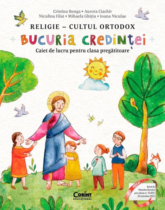 Religie. Cultul ortodox. Bucuria credintei - Clasa pregatitoare - Caiet de Niculina Filat , Aurora Ciachir , Cristina Benga , Ioana Niculae , Mihaela GhitiuAcest Caiet de lucru este conceput conform programei in vigoare, care dezvolta tema majora Dumnezeu este cu noi prin descoperire si iubire si reprezinta un auxiliar ce poate fi folosit la scoala, de catre profesori, in cadrul orei de Religie sau acasa, de catre familie. De asemenea, poate fi folosit ca suport de lucru in cadrul activitatilor din centrele educationale pentru copii, organizate de parohiile din tara sau din strainatate.