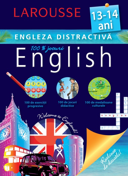 Larousse. Engleza distractiva 13-14 ani de LarousseCartea este conceputa de specialistii Larousse pentru copiii de 13-14 ani care studiaza limba engleza.Contine exercitii progresive, jocuri didactice, medalioane culturale.• Recapitularea unor notiuni gramaticale esentiale• Exercitii adaptate in vederea aplicarii cunostintelor • Jocuri antrenante• Vocabular tematic • Siretlicuri care te vor ajuta sa-ti imbunatatesti engleza • Informatii despre civilizatia britanicaCu:• Raspunsuri amanuntite• Minilexicon englez-roman• Lista unor verbe neregulate englezesti Cu metoda Larousse, limba engleza nu va mai avea niciun secret pentru voi!