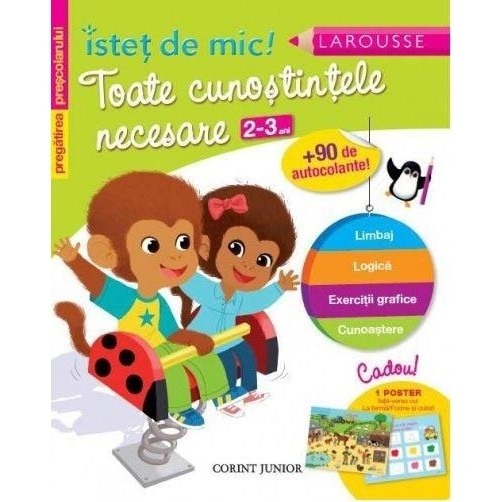 Istet de mic.Toate cunostintele necesare (2-3 ani) de Acest caiet de lucru este ideal pentru a-l insoti pe copilul dumneavoastra pe tot parcursul anului.• Contine 56 de fise simple si distractive, concepute pentru a facilita un proces de invatare interactiv, prin joc si amuzament.• Peste 90 de autocolante, cu ilustratii atractive si teme amuzante, care il incurajeaza si il stimuleaza pe copil• Un poster detasabil, care poate fi afisat in camera copilului, pentru a-l ajuta sa invete alfabetul si sa-si imbogateasca vocabularul• O mica povestioara, la finalul cartii, pentru a folosi vocabularul prezentat in poster si a lipi alte autocolante!