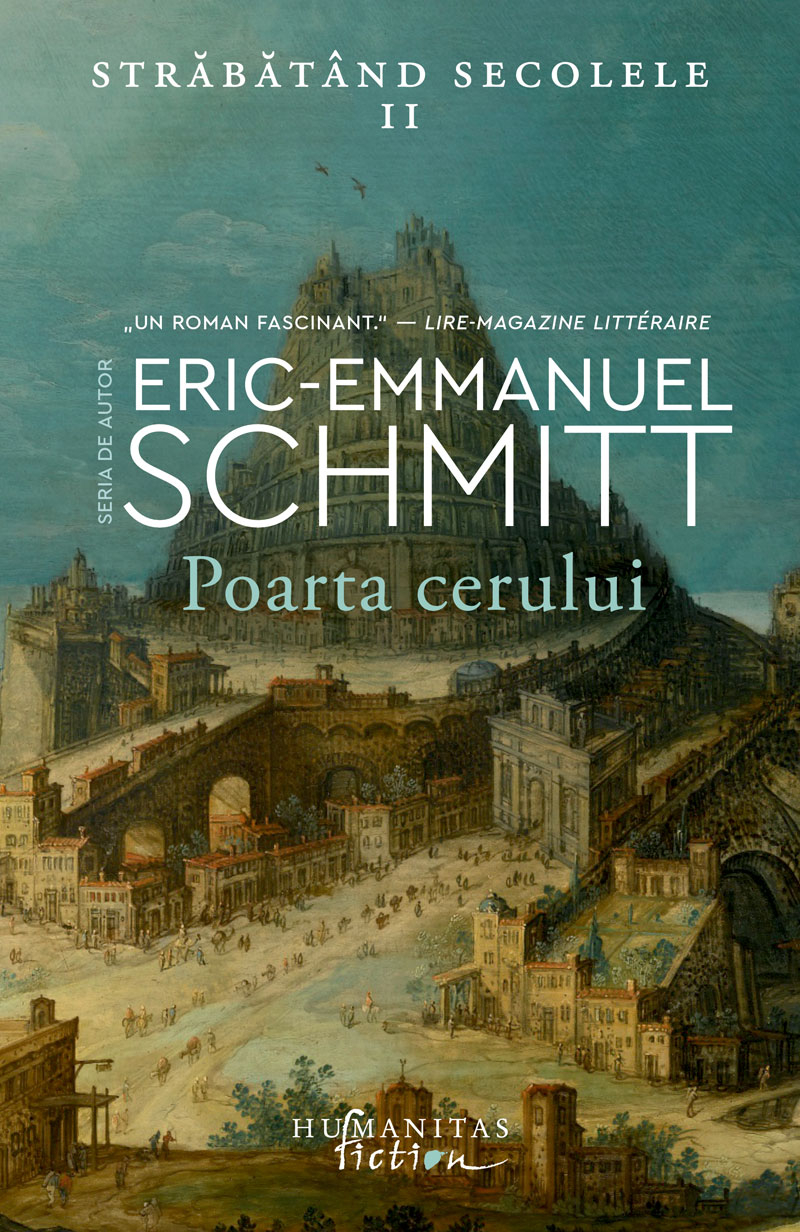Poarta cerului Strabatand secolele II de Eric-EmmanuelTraducere de Doru Mares Strabatand secolele, noul ciclu romanesc al lui Eric-Emmanuel Schmitt proiectat in opt volume, poveste de dragoste nemuritoare si ampla panorama a istoriei umanitatii, a fost inaugurat de Paradisuri pierdute. In Poarta cerului, al doilea roman al ciclului, Schmitt reinvie complexa si stralucitoarea civilizatie mesopotamiana. In vremuri biblice, in zgomotosul oras Babel, unde un rege tiranic ar face orice pentru a-si vedea implinit visul nebunesc – un turn care sa ajunga la zei –, Noam, protagonistul acestei saga, descopera, alaturi de noi prieteni, scrisul, arhitectura, astronomia si reintalneste vechi dusmani si aliati. "Dialogurile sunt fluente, scriitura e vie, aventurile extraordinare. S-o spunem din capul locului – aceasta continuare este uluitoare!" — Le Figaro