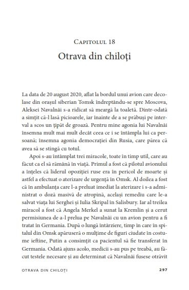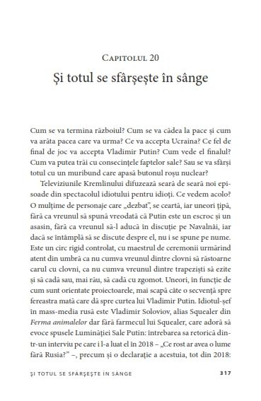 Criminalul de la Kremlin Exploziva dezvaluire a terorii impuse de Putin de John SweeneyBestseller in topulSUNDAY TIMESO relatare captivanta si exploziva despre tirania lui Vladimir Putin, cartea de fata prezinta ascensiunea liderului rus de la spion la "tar", expunand evenimentele care au condus la invadarea Ucrainei si la atacul asupra Europei.In Criminalul de la Kremlin, jurnalistul John Sweeney ii poarta pe cititori intr-o calatorie din inima Rusiei lui Putin pana la campurile acoperite de cadavre din Cecenia si pana la orasele asediate din Ucraina. In aceasta dezvaluire tulburatoare despre ambitia sinistra a lui Putin, Sweeney se foloseste de articolele sale in care vorbeste despre o perioada de treizeci de ani din viata liderului rus – de la atentatele cu bomba asupra apartamentelor din Moscova la atrocitatile comise de armata rusa in Cecenia, la anexarea Crimeei si la confruntarea avuta de ziarist cu Putin in legatura cu doborarea aeronavei MH17.Bazandu-se pe relatarile martorilor oculari si pe marturiile convingatoare ale celor care au suferit din cauza lui Putin, cartea prezinta eroismul opozitiei ruse, curajul rezistentei ucrainene si brutalitatea cu care Kremlinul raspunde la astfel de acte de sfidare. Putin nu se da in laturi de la nimic pentru a-si atinge scopurile imperialiste: de la intemnitarea pana la asasinarea criticilor sai.Traducere: Mihaela-Veronica Busuioc"Nimeni in lume nu te va ierta ca ai ucis oameni pasnici"VOLODIMIR ZELENSKI, Presedintele Ucrainei