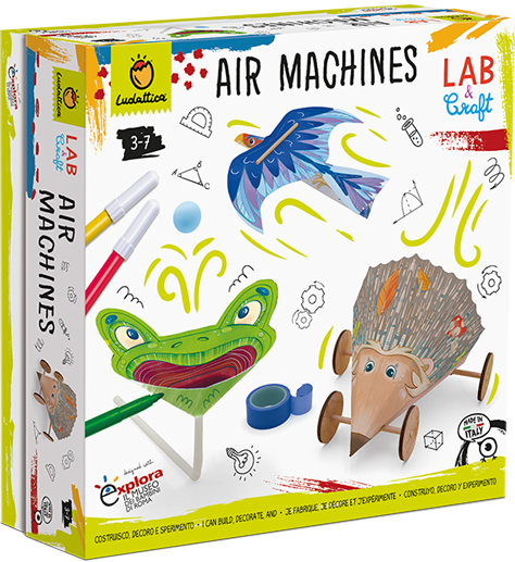 JOC STEAM-MASINARII PE BAZA DE AERDatorită împingerii aerului... ariciul se aruncă pe roțile sale, rândunica de hârtie zboară ca un zmeu și mingea rămâne suspendată în gura largă a broaștei! Un joc de decorare și construcție de obiecte care funcționează datorită forței aerului. Multe experiențe care aduc copiii mai aproape de știință prin creativitate și experimentare. Creat in colaborare cu EXPLORA – MUZEUL COPIILOR DIN ROMA, este conceput dupa abordarea STEAM. Jocul contine :