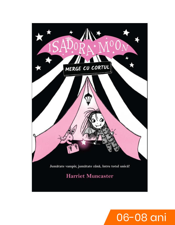 Isadora Moon merge cu cortul de Harriet Muncaster Varsta recomandata 6-8 ani. Mama ei este zana, tatal este vampir, iar ea este cate putin din amandoua!Indrageste noaptea, liliecii si costumul negru de balet, dar si soarele stralucitor, bagheta magica si il adora pe Iepurasul Roz.De la frigerea bezelelor pe un foc de tabara, la imprietenirea cu o sirena in preajma Isadorei se petrec lucruri speciale!Aceasta sunt eu, Harriet Muncaster! Sunt autoarea si ilustratoarea cartii despre Isadora Moon.Da, chiar asa! Imi place orice e dragalas, orice e stralucitor si oricine este un visator.