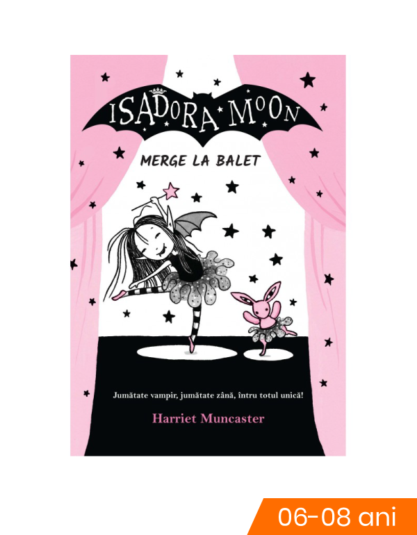 Isadora Moon merge la balet de Harriet Muncaster Varsta recomandata 6-8 ani. Mama ei este zana, tatal este vampir, iar ea este cate putin din amandoua!Indrageste noaptea, liliecii si costumul negru de balet, dar si soarele stralucitor, bagheta magica si il adora pe Iepurasul Roz.Dar, la ridicarea cortinei unde-i Iepurasul Roz?Aceasta sunt eu, Harriet Muncaster! Sunt autoarea si ilustratoarea cartii despre Isadora Moon.Da, chiar asa! Imi place orice e dragalas, orice e stralucitor si oricine este un visator.