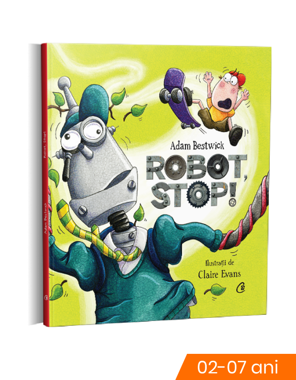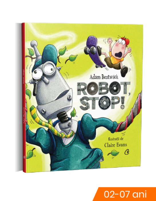 Robot, stop! de Adam BestwickCand tatal lui Robbie a construit un robot care sa se ocupe de toate treburile casnice, totul parea minunat. Munca familiei ar fi fost preluata de robot. Insa lucrurile au luat o intorsatura nefasta, cand lui Robbie i-a venit o idee.Care a fost ideea baiatului si cum a reusit el sa repare greselile provocate de ea? Citeste si vei afla: povestea despre piulite, suruburi si un haos mecanic!