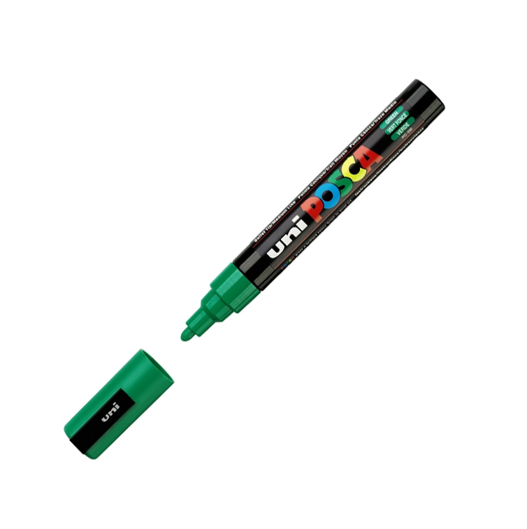 Marker Posca - Verde PC-5MCuloare pe baza de apa, fara miros.