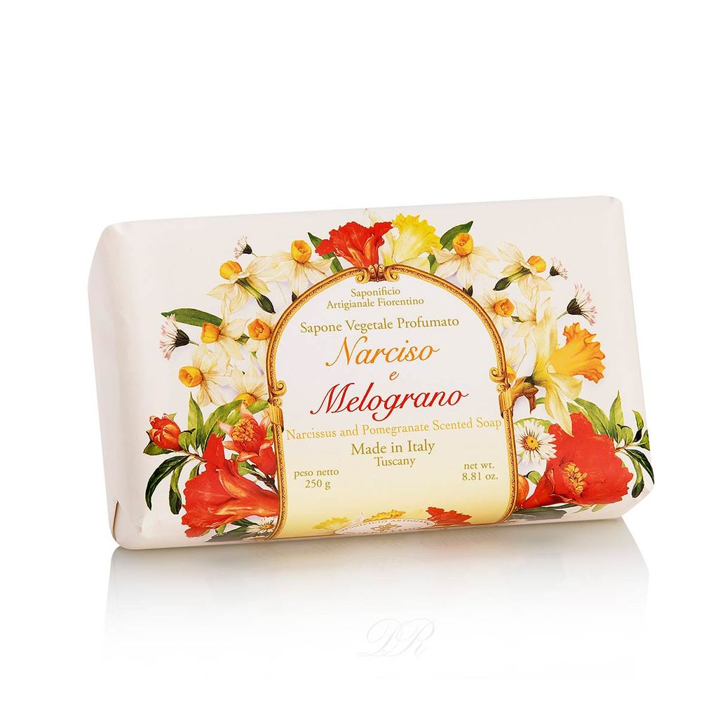 Pasiuni intense în colecția de săpunuri Incontri. Narciso e Melograno este produs în în Italia din uleiuri vegetale de cea mai bună calitate și extracte naturale. Este cadoul ideal pentru aroma lui deosebită de rodie și narcise, o combinație rafinată și delicată. După folosire, pielea rămâne catifelată și revigorată. Nu conține chimicale. Gramaj 250 g. Distribuit de: LIBRARUL BOOKS TOYS & GIFTS srl, str. Bahluiului nr 1, București; tel 021 222 8380