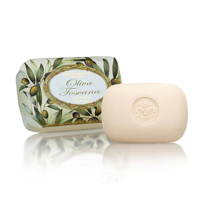 Culorile și aromele peisajului toscan în colecția Oliva. Săpunul Oliva, gravat cu crin, se bazează doar pe componente naturale care înfrumusețează și răsfață pielea. Este cadoul ideal pentru mirosul îmbietor de măslin și calitățile sale: curăță în profunzime, hidratează, tonifică și purifică tenul. Datorită conținutului de glicerină catifelează pielea și menține un nivel optim de umiditate. Datorită ambalajului frumos și elegant sunt ideale pentru un cadou.