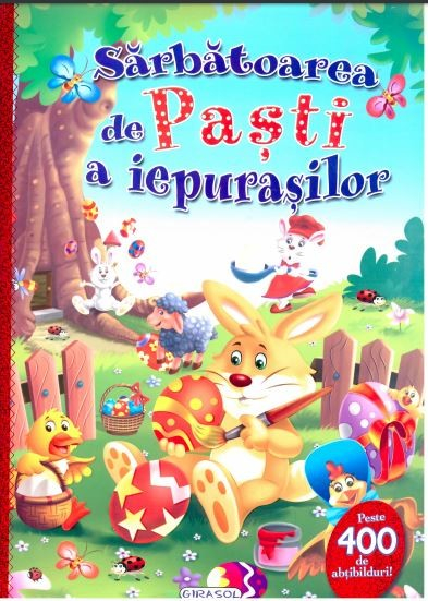 Sarbatoarea de Pasti a iepurasilor de Colectiv SusaetaNiciodata nu te-ai gandit la o carte de Pasti in care sa poti citi o poveste deosebita si versuri frumoase si, in plus, sa te distrezi de minune lipind o gramada de abtibilduri (peste 400)...Iata, o ai la indemana: iti prezentam aici lumea in care iepurasii sarbatoresc Pastele!