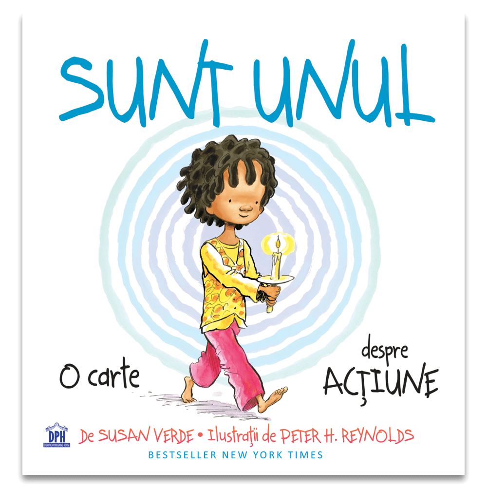 Sunt Unul O carte despre actiune de Susan VerdeDescriereSunt Unul este inspirata de un citat din Dalai Lama: "Exact asa cum se propaga undele cand o singura pietricica este aruncata in apa, actiunile indivizilor pot avea efecte care sa duca departe".Intr-adevar, de la un singur om, pot incepe lucruri minunate. O samanta pentru a incepe o gradina, o nota pentru a incepe sa darami ziduri: fiecare miscare si moment de schimbare incep cu un scop, cu o intentie, cu UN lucru. Cu mine. Cu tine.De la echipa care a creat bestselleurile New York Times – Sunt Yoga, Sunt Pace, Sunt Om si Sunt Iubire primim un apel mobilizator de a trece la fapte, unul care incurajeaza fiecare cititor sa spuna ce are de spus, sa ofere o mana de ajutor sau sa faca acel unic prim pas pentru a crea si a inainta spre o lume mai buna.Cartea include un exercitiu de meditatie indrumata.Despre autor/ilustrator:Susan Verde este autoarea cartilor Sunt Pace, Sunt Om, Sunt Yoga si Sunt Om ilustrate de Peter H. Reynolds. Preda yoga si mindfulness pentru copii si locuieste in East Hampton, New York.Peter H. Reynolds a realizat desene pentru numeroase carti ilustrate de succes, premiate, inclusiv Sunt Pace, Sunt Om, Sunt Yoga si Sunt Iubire. Locuieste in Dedham, Massachusetts, unde conduce indragitul magazin Blue Bunny Books and Toys.