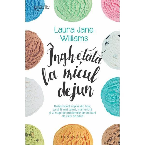 Inghetata la micul dejun Redescopera copilul din tine, ca sa fii mai calma, mai fericita si sa scapi de problemele de doi bani ale vietii de adult de Pare ca lumea din jur si-a piedut busola, iar stresul cotidian te ajunge din urma? Nu dispera! Laura Jane Williams te invata cum sa devii iarasi stapana pe tine, sa te pretuiesti, sa razi din toata inima si sa te bucuri de viata.Solutia e simpla: coboara in adancurile fiintei pana la cea mai fericita si mai luminoasa perioada din viata ta, copilaria, si reconecteaza-te cu copilul care ai fost.Ia-ti o binemeritata pauza de la grijile varstei adulte, pune surdina vocilor celor care-ti spun ca esti om in toata firea, cu responsabilitati pe umeri si chestiuni urgente de rezolvat, si reinvata sa fii senina, vesela si sa te rasfeti asa dupa cum meriti.Da, poti sa te imbraci office, sa platesti facturi si sa te lupti cu deadline-urile si in acelasi timp sa-l lasi pe copilul din tine sa-si traiasca emotiile cu sinceritate, neingradit de regulile aberante ale adultilor, sa se minuneze de magia fiecarei zile si sa manance inghetata la micul dejun!LAURA JANE WILLIAMS este scriitoare si jurnalista. A publicat articole in The Telegraph, The Metro, The Sun, Marie Claire, Stylist, The Debrief si pe Buzzfeed.