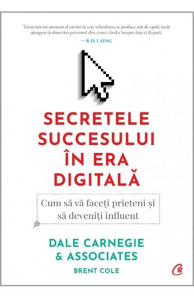 Secretele succesului in era digitala de Dale CarnegieIn lumea contemporana, caracterizata de aparitia retelelor de socializare, dominatia e-mailului si inlocuirea interactiunilor directe de catre cele virtuale, lectiile lui Dale Carnegie nu sunt doar actuale, ci si extrem de importante. Desi nu ar fi putut niciodata prezice traiectoria pe care o va urma tehnologia, Carnegie se dovedeste a fi un profesor intelept, al carui ajutor poate fi extrem de util in peisajul digital in care traim. Pentru a dovedi ca invataturile acestuia sunt in continuare relevante, Brent Cole, lucrand alaturi de Dale Carnegie & Associates, Inc., a regandit recomandarile si principiile transmise de acesta pentru dificila era digitala in care traim. Chiar daca, in prezent, comunicam utilizand instrumente diferite si cu o viteza mult mai mare, sfaturile lui Carnegie privind felul in care putem sa discutam, conducem si muncim eficient raman de nepretuit odata cu trecerea anilor.Abordarea de bun simt a lui Dale Carnegie asupra comunicarii a rezistat timp de un secol, ajungand la milioane si milioane de cititori. Singura diploma ce se regaseste in biroul lui Warren Buffet este certificatul sau de la Dale Carnegie Training. Lee Iacocca este convins ca a dobandit curajul de a vorbi in public datorita lui Carnegie. Iar Scott Adams, creatorul benzii desenate Dilbert, sustine ca invataturile lui Carnegie sunt capabile sa schimbe vieti.E randul dumneavoastra sa utilizati cartea de fata pentru a invata cum sa comunicati cu diplomatie si tact, sa descoperiti subtilitatile si valoarea mediilor online, sa-i faceti pe oameni sa va placa, sa va creati o retea stabila, sa deveniti un orator mai convingator, sa va transmiteti mesajul cat mai clar si cat mai departe, sa fiti un lider mai eficient, sa deveniti un specialist cand vine vorba de mediul online, sa va dezvoltati abilitatea de a duce lucrurile la bun sfarsit si sa profitati la maximum de puterea instrumentelor digitale.Dale Carnegie pe numele lui real Dale Carnegey s-a nascut pe 24 noiembrie 1888 la o ferma saraca din Missouri si s-a stins din viata pe 1 noiembrie 1955, la Forest Hills, New York. Este considerat cel mai mare autor de literatura motivationala al secolului XX.Dupa absolvirea facultatii, vinde cursuri prin corespondenta in Nebraska si obtine cateva roluri ca actor la New York, fara mare succes. In 1912, este angajat de Young Men Christian Association sa predea cursuri pentru adulti si descopera, accidental, o metoda prin care poate diminua teama celor care vorbesc in fata unui public numeros. Astfel incepe faimoasa cariera de orator si autor de mare succes a lui Dale Carnegie.In urmatorii doi ani, Carnegie isi rafineaza cursul, venind in intampinarea dorintei americanului mediu de a-si intari increderea in sine. Isi schimba numele din Carnegey in Carnegie, ceea ce reprezinta o miscare de marketing inspirata. Incepe sa publice diverse materiale in care-si prezinta in mod sistematizat ideile; in 1926, acestea vor fi adunate intr-o carte despre vorbirea in public Public Speaking: A Practical Course for Business Men.In 1936, Dale Carnegie publica How To Win Friends and Influence People, carte care a inregistrat inca de la publicare un succes rasunator. De-a lungul anilor, aceasta lucrare, considerata opera de referinta a lui Carnegie, s-a vandut in peste 15 milioane de exemplare. Ea a fost tradusa in toate limbile de circulatie internationala, iar in limba romana a aparut la Curtea Veche Publishing sub titlul Secretele succesului. Cum sa va faceti prieteni si sa deveniti influent. O alta lucrare de referinta, publicata in 1948, este How to Stop Worrying and Start Living, aparuta in limba romana la Curtea Veche Publishing sub titlul Lasa grijile, incepe sa traiesti o colectie de sfaturi usor de pus in aplicare pentru a face fata mai bine stresului. Dintre cartile lui Dale Carnegie, aceasta a avut cel mai mare succes in Europa.Pe Dale Carnegie il regasim in topul celor mai bine vanduti autori din toate timpurile. La mai bine de jumatate de veac de la moartea lui, cartile sale sunt la fel de solicitate ca in primii ani dupa lansare.Eforturile lui Dale Carnegie de raspandire a unor metode prin care ne putem optimiza relatiile cu semenii si cu lumea au fost continuate de Fundatia Carnegie. Cursurile pe care Carnegie insusi le-a initiat si predat sunt frecventate si astazi de zeci de mii de oameni din intreaga lume, confirmand actualitatea si utilitatea metodelor autorului. Aprofundarea acestor practici e vitala pentru toti cei care doresc sa ocupe posturi importante in ierarhiile companiilor occidentale.Brent Cole este autor si agent literar. In 2002, a pus bazele companiei Invisible Ink, o agentie ce ofera servicii editoriale si literare.