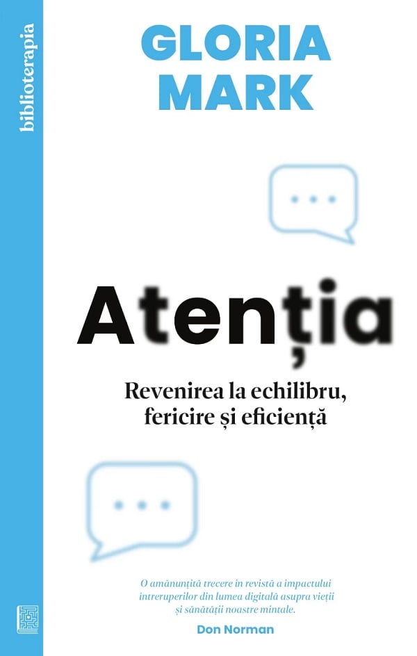 Atentia. Revenirea la echilibru, fericire si eficienta de Gloria MarkFaci slalom printre sarcini. Raspunzi prompt la notificarile sefilor si la mesajele prietenilor. Nu e usor sa faci fata distragerii, intreruperilor si problemelor de concentrare care survin odata cu ele. Gloria Mark iti vine in ajutor, invitandu-te la o reflectie asupra tuturor dificultatilor pe care le ridica navigarea pe internet si consumul de continut media. Pornind de la propria experienta si de la cercetarile extinse realizate pe parcursul a zeci de ani, autoarea iti dezvaluie adevaratul cost al dezechilibrului unei vieti mai complicate.
