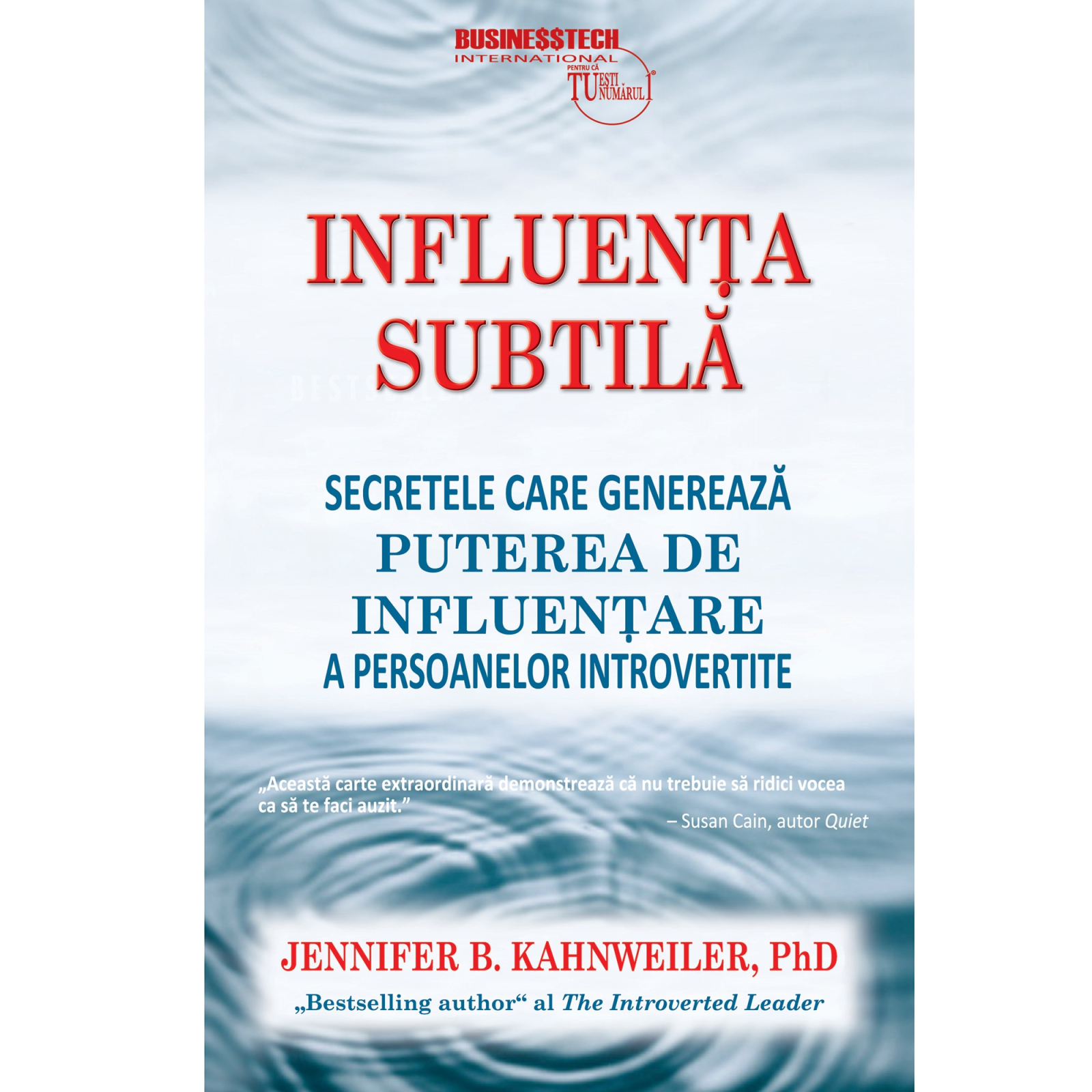 Influenta subtila Secretele care genereaza puterea de influentare a persoanelor introvertite de Jennifer KahnweilerCUM SA AI IMPACT FARA SA FACI MULT ZGOMOT"Nu subestima hotararea unui om linistit."- Iain Duncan Smith, politician britanicIntrovertitii, care isi iau energia din propriile trairi interioare, se pot simti adesea confuzi si subapreciati intr-o lume centrata pe caracteristicile extravertitilor si care ii rasplateste pe cei care 'ies in lumina reflectoarelor'.Multe carti despre exercitarea influentei rateaza jumatatea introvertita a populatiei deoarece recomanda exclusiv o abordare cat mai extrovertita, ceea ce implica sa iti atragi sustinerea oamenilor fiind cat mai vocal si coplesindu-i pe ceilalti cu cat mai multe argumente, astfel incat sa-i convingi rapid si agresiv sa faca ceea ce vrei tu. Dar a-ti exercita influenta nu inseamna sa obligi oamenii sa vada lucrurile in felul in care le vezi tu, ci inseamna sa inveti de la altii si sa negociezi o solutie acceptabila pentru toate partile implicate. Aceasta abordare se potriveste bine temperamentului introvertit. Ea implica rabdare, planificare si perseverenta.Aceasta este prima carte despre influentarea celorlalti conceputa special pentru introvertiti, cei care isi exercita influenta intr-un mod atat de subtil incat putini par sa observe.Jenifer Kahnweiler demonstreaza punct cu punct si pagina cu pagina cum pot introvertitii sa fie cei mai eficienti influentatori punandu-si in valoare punctele forte naturale in loc sa isi risipeasca resursele fizice si psihice incercand sa copieze ceea ce fac extravertitii.Ea identifica sase puncte forte pentru exercitarea Influentei Subtile si pune la dispozitie un chestionar - Indicele de Influenta Subtila (iis) - care masoara cat de eficient sunt folosite cele sase puncte forte. Apoi, prin chestionare, foi de lucru, exercitii si exemple puternice din lumea reala conduce cititorul spre dobandirea maiestriei in arta influentarii subtile.Cele sase puncte Forte pentru Exercitarea Influentei Subtile sunt:1. Timpul in Solitudine - Perioadele de liniste de care introvertitii au atata nevoie sunt puternice surse de profunzime si creativitate.2. Pregatirea - Pregatirea atenta, care ii face pe introvertiti sa se simta mult mai siguri pe ei, ofera sansa de a acumula informatii si de a anticipa obiectiile.3. Ascultarea Angajata - Abilitatea naturala a introvertitilor de a asculta mai mult decat sa vorbeasca este cruciala pentru stabilirea unor conexiuni puternice si pentru intelegerea reciproca.4. Conversatiile Focalizate - Introvertitilor nu le plac conversatiile superficiale. Ei exceleaza in interactiunile unu-la-unu, cu scopuri clare si profunde, care consolideaza relatiile si faciliteaza exercitarea influentei.5. Scrierea Textelor - Preferinta introvertitilor pentru scris in detrimentul vorbirii ii face apti sa ii influenteze pe ceilalti prin texte puternice, autentice si bine argumentate.6. Folosirea Judicioasa a Retelelor Sociale - Pentru introvertiti, autodez- valuirea in exces prin intermediul mijloacelor de comunicare online nu este cu nimic mai atragatoare decat cea din viata reala. Ei folosesc retelele sociale just si eficient, pentru a-si raspandi mesajul si a-i influenta pe altii sa progreseze.Influenta Subtila este ghidul pentru obtinerea unui mai mare impact pozitiv pe care toti introvertitii l-au asteptat si din care pot invata multe si extrovertii.