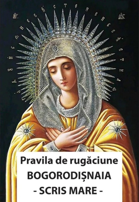 Pravila de rugaciune Bogorodisnaia. Cu scris mareNascatoare de Dumnezeu Fecioara, Bucura-Te! Ceea ce esti plina de dar, Marie, Domnul este cu Tine. Binecuvantata esti Tu intre femei si binecuvantat este rodul pantecelui Tau, ca ai nascut pe Mantuitorul sufletelor noastre.
