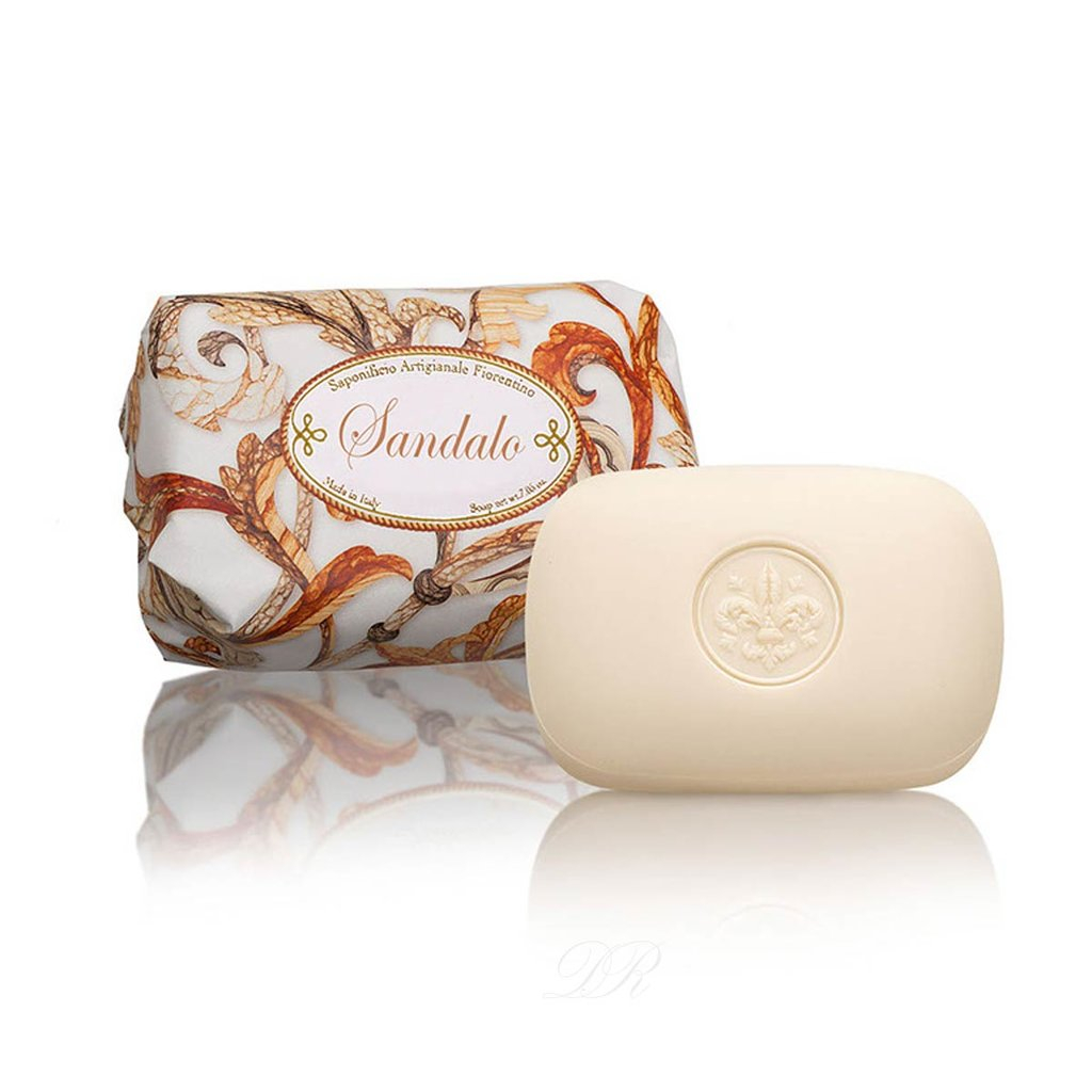 Emoțiile unei călătorii spre un tărâm îndepărtat în colecția Samarcanda. Săpunul natural Sandalo, produs în Toscana din uleiuri vegetale și gravat cu floare de crin, are o aromă florală deosebită, de lemn de santal, este hrănitor și hidratant. După utilizare, pielea rămâne perfect revigorată, parfumată, catifelată și plăcută la atingere. Datorită ambalajului frumos și elegant sunt ideale pentru un cadou.