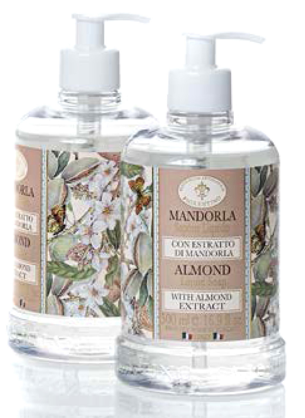 Sapun lichid cu extract de migdale produs in Italia. Profitati din plin de calitatile hidratante ale acestui sapun cu aroma lui bogata de migdale pentru o ingrijire delicata si naturala a pielii. Elimina perfect impuritatile si germenii, calmeaza pielea iritata, reduce ridurile si mentine echilibrul natural al Ph-ului. Esentele sale produc o spuma densa care catifeleaza, improspateaza si redau aspectul sanatos si luminos al pielii. DescriereProdus exclusiv in Toscana de Saponificio Artigianale Fiorentino, din ingrediente de cea mai buna calitate, atent selectionate pentru a satisface cea mai pretentiosa clientela. Ingrediente: Apa, Sodium Coceth Sulfate, Coco Betaine, SodiumLauroyl Glutamate, Peg-40 Hydrogenated Castor Oil Trideceth-9,Aroma, Sodium Chloride, Lactid Acid, Sodium Benzoate, TributylCitrate, Phenoxyethanol, Potassium Sorbate, Coco Glucoside, SodiumCocoyl Glicinate, Ext. D&C Violet 2, Linabol, (*) Lavandula Angustifolia(lavanda), Flower Extract, Coumarin, Citronellol. Testat dermatologic. Gramaj 500 ml. Librarul Books srl, str. Bahluiului nr. 1.Bucuresti, tel. 021 222 8380