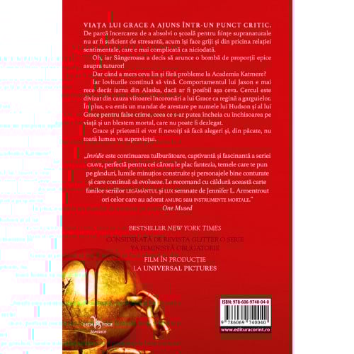 Invidie (al treilea volum al seriei Crave) de Tracy WolffBESTSELLER NEW YORK TIMESCONSIDERATA DE REVISTA GLITTER O SERIE YA FEMINISTA OBLIGATORIEFILM IN PRODUCTIE LA UNIVERSAL PICTURES VIATA LUI GRACE A AJUNS INTR-UN PUNCT CRITIC.De parca incercarea de a absolvi o scoala pentru fiinte supranaturale nu ar fi suficient de stresanta, acum isi face griji si din pricina relatiei sentimentale, care e mai complicata ca niciodata.Oh, iar Sangeroasa a decis sa arunce o bomba de proportii epice asupra tuturor!Dar cand a mers ceva lin si fara probleme la Academia Katmere?Iar loviturile continua sa vina. Comportamentul lui Jaxon e mai rece decat iarna din Alaska, daca ar fi posibil asa ceva. Cercul este divizat din cauza viitoarei incoronari a lui Grace ca regina a garguielor.In plus, s-a emis un mandat de arestare pe numele lui Hudson si al lui Grace pentru false crime, ceea ce s-ar putea incheia cu inchisoarea pe viata si un blestem mortal, care nu poate fi dezlegat.Grace si prietenii ei vor fi nevoiti sa faca alegeri si, din pacate, nu toata lumea va supravietui..."Invidie este continuarea tulburatoare, captivanta si fascinanta a seriei CRAVE, perfecta pentru cei carora le plac fantezia, temele care te pun pe ganduri, lumile minutios construite si personajele bine conturate si care continua sa evolueze. Le recomand cu caldura aceasta carte fanilor seriilor LEGAMANTUL si LUX semnate de Jennifer L. Armentrout ori celor care au adorat AMURG sau INSTRUMENTE MORTALE." One Mused"Aceasta carte a fost sfasietor de frumoasa!" Book Wife Review"A avut romantism. A avut actiune. A fost plina de suspans. A avut momente de tristete. A avut momente de fericire. A fost intensa. A avut de toate!" Frantic for Romantic"Felul in care scenele de actiune, aventura si romantismul se impletesc este cu adevarat uimitor si continua sa se imbunatateasca de la un volum la altul!" Fizzing Whizzbees"Invidie este o lectura distractiva si captivanta, cu o intriga care te va tine cu sufletul la gura si cu personaje grozave, pe care simti nevoia sa le incurajezi. Exista drama, exista romantism, exista actiune si exista inimi frante. Imi place directia in care se indreapta seria si abia astept sa vad ce urmeaza sa se intample!" Cait's Books